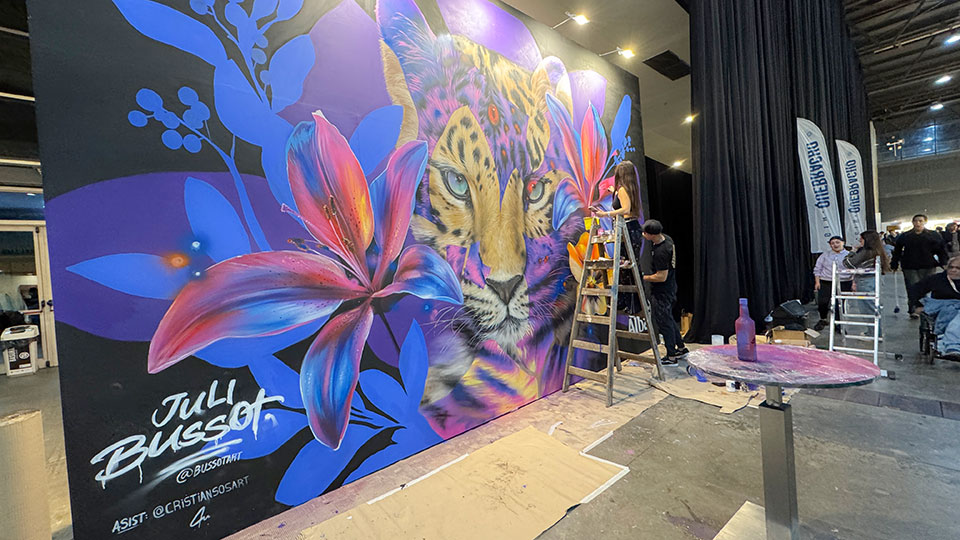 Acerca de su trayectoria, Bussot cuenta: “Soy artista desde los 15 años y muralista desde la pandemia. La mayor obra que hice fue de 500 m² en Caballito, una cuadra entera”.