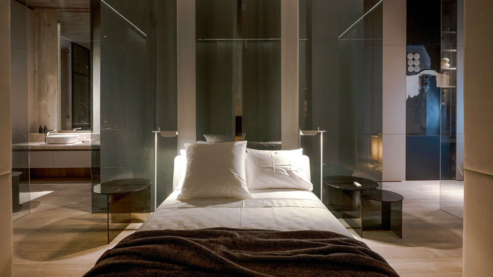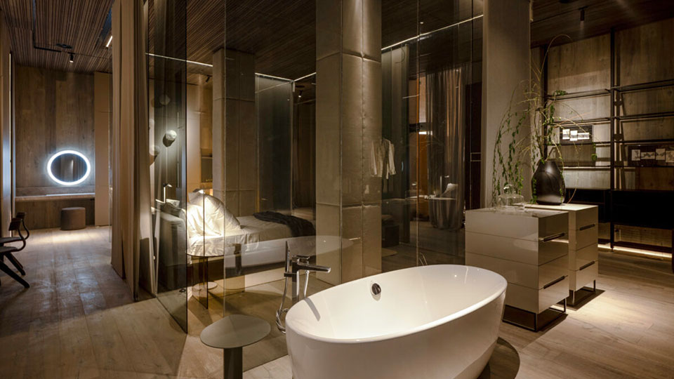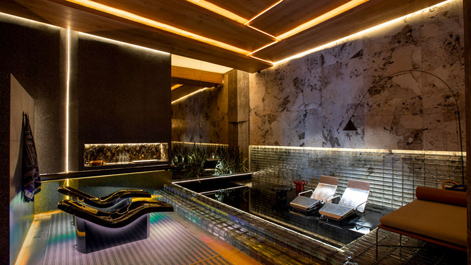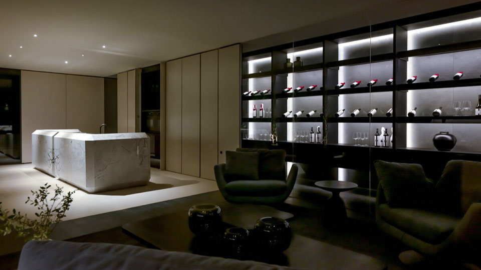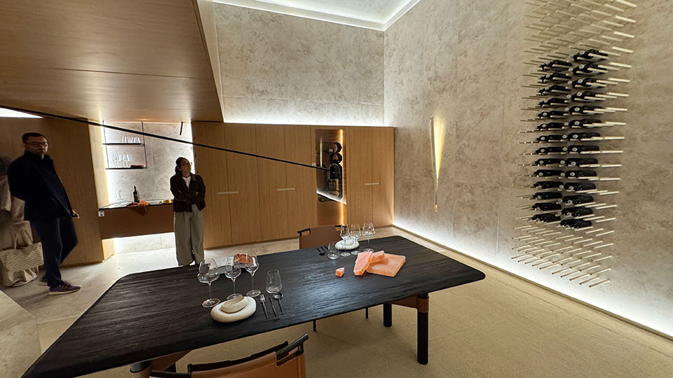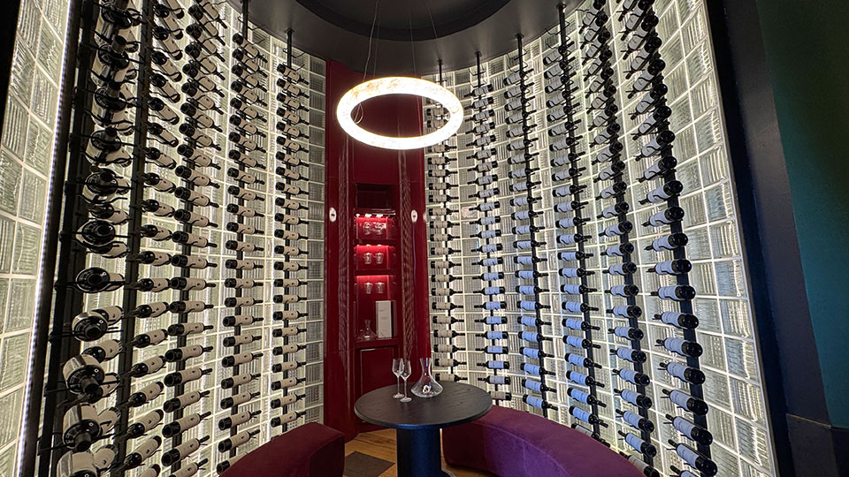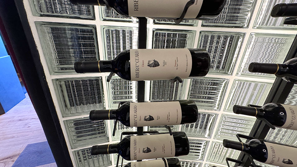 Gaby López Monzón (▴ foto), diseñadora de interiores de C'est Moi Deco, presenta “Gran Hotel Boutique”: “Hay unas 340 botellas. Tenía cuatro columnas preexistentes y para replicar un ritmo con pasajes intercolumnios traté de darle una impronta arquitectónica con facetados y pórticos. Es un hotel boutique con énfasis en el tamaño petite y la atención personalizada de los huéspedes. Es una cava que hice con vitroblock retroiluminada de piso a techo”.