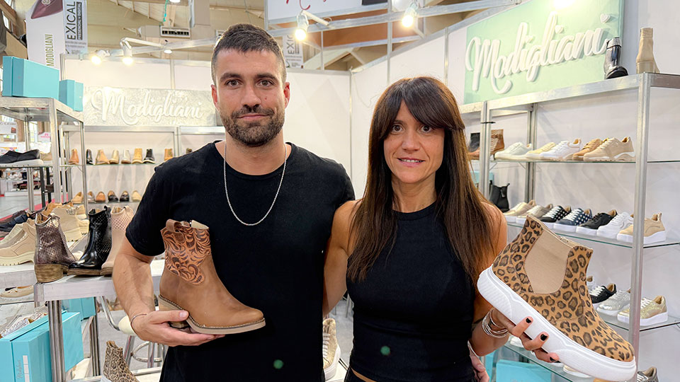 Mauro Papiri (▴ foto, izq.), presidente de la Cámara de la Industria del Calzado y Afines de Santa Fe y expositor de la muestra, comenta: “A esta exposición venimos desde hace más de 20 años. Empezó viniendo mi papá y ahora estamos mi hermana Maira y yo representando a la empresa, que ya tiene más de 40 años de trayectoria. Somos la tercera generación. La empresa se llama Modigliani ofrecemos calzado de dama y algo de hombre con la marca Brabante”.