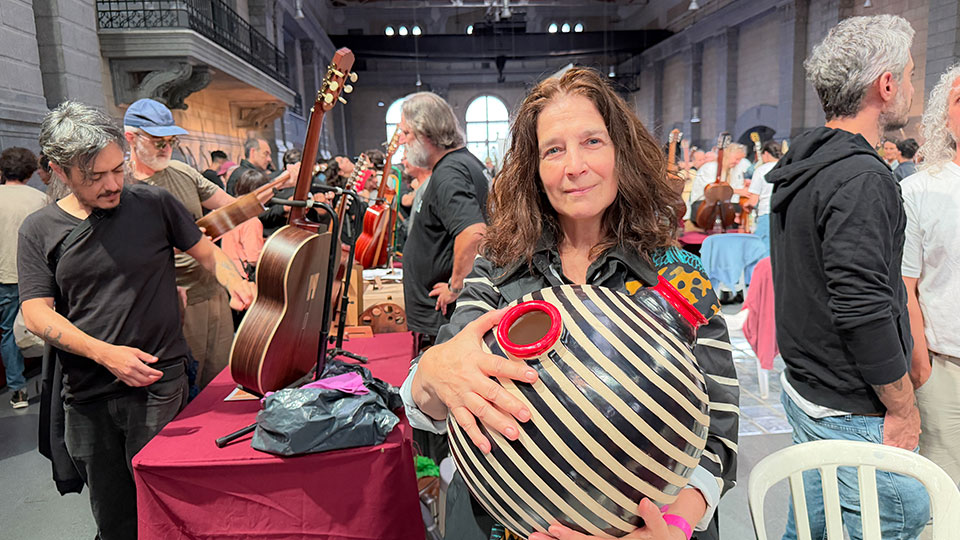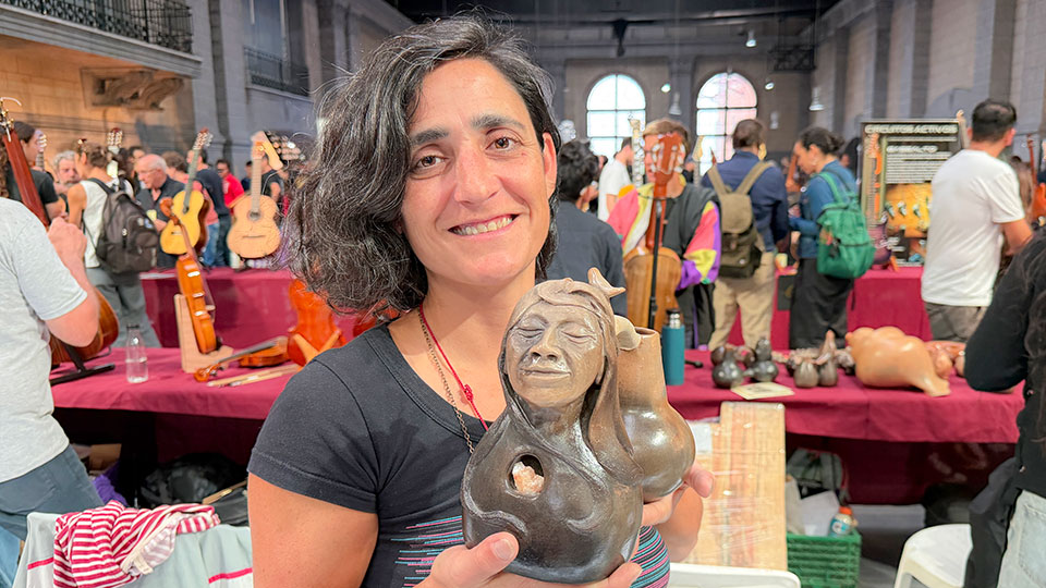 Olga Tarditti (▴ foto) lleva 30 años dedicada a este oficio: “En una oportunidad llegó un percusionista muy conocido a mi taller a pedirme que le hiciera los Udu Drum de cerámica. En ese momento no se conocían en el país, Sting los usa en una sesión y se vuelven muy conocidos”. Sobre estos instrumentos, explica: “Estos instrumentos de origen nigeriano lo usaban las mujeres para ir a buscar agua al río, volvían con la vasija llena de agua, charlando y haciendo música. Está muy de moda, todos los percusionistas usan estos instrumentos. Tiene dos bocas, vas trabajando el sonido, con mucha riqueza y muy primitivo en su sonoridad”. Los percusionistas los buscan especialmente. “Un Udu sale entre $300.000 y $400.000, cerámica de alta temperatura, yo hago el diseño y la moldería. Mis Udu tienen un diseño estético y sonoro muy particular”. Del evento, comenta: "Vendí, valió la pena, hice muchos contactos, he participado en las ferias de Córdoba desde 2009. El año pasado no pude. Esta feria es un lujo”.