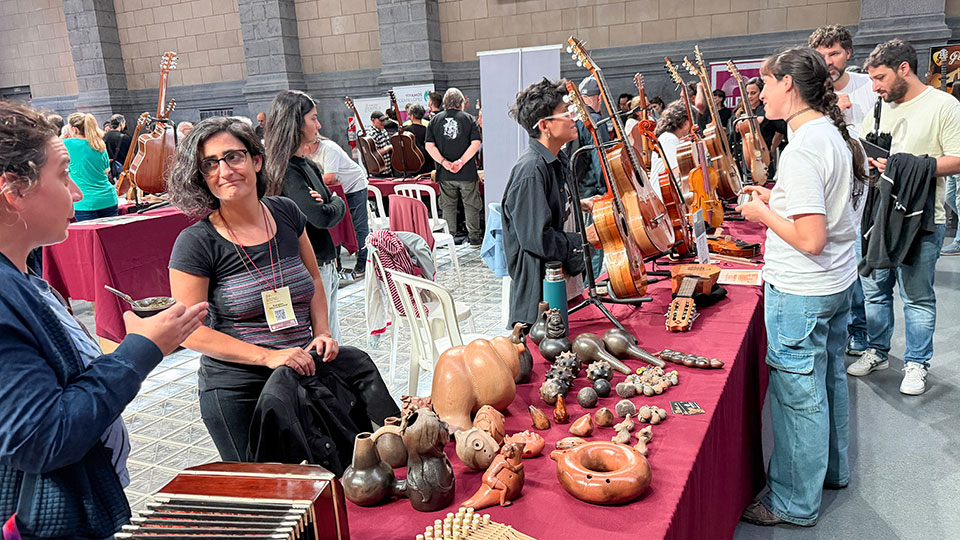 Ayelen Freitas (▴ foto), de Kutralwe Cerámica Nativa, explica: “Son instrumentos de raíz precolombina, los uso con estéticas contemporáneas de mi propia creación. Empecé a estudiar cerámica hace nueve años, llevo muchos años de investigación y haciendo”. Su producción incluye silbatos chicos desde $15.000 hasta vasijas silbadoras grandes de USD500. “Esas llevan unas cuantas semanas hacerlas”. Participa del evento desde hace varios años: “También participo en la expo de Córdoba, siempre me va muy bien, por eso sigo viniendo, es un encuentro entre colegas, siempre es muy bien recibido en la comunidad de luthiers”. Sus instrumentos son muy buscados para ambientar y generar efectos. “Cada vez somos más expositores, me encanta. Este grupo somos la Red Lutherística, de mujeres y disidencias dentro de la luthería”.