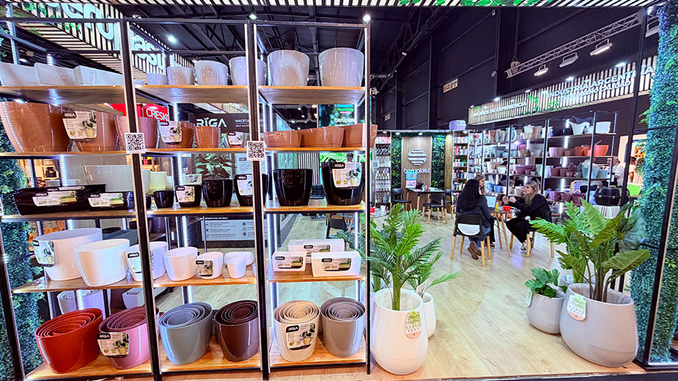 Marina Bertuna (▴ foto), de Beruplast, se presentó: “Soy segunda generación de BeruPlast, industria argentina. Todo lo que está en este stand es fabricado por nosotros en nuestra planta de San Martín, en Buenos Aires. Nosotros fabricamos artículos para el hogar, especialmente macetas. Somos muy fuertes en ese segmento, en el jardín”. La empresa cuenta con 14 inyectoras de plástico que les permiten fabricar sus matrices, además de dos centros mecanizados.