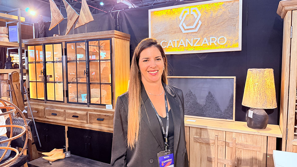 Paula Cavaliere (▴ foto), de Catanzaro, expresó: “Esta es nuestra segunda participación, somos relativamente nuevos. Somos fabricantes, estamos acá en Buenos Aires. Trabajamos todo lo que es madera dura, tanto ceiba, petiribi, kiri, cedro, guayubira. Todo es de fabricación nacional”.