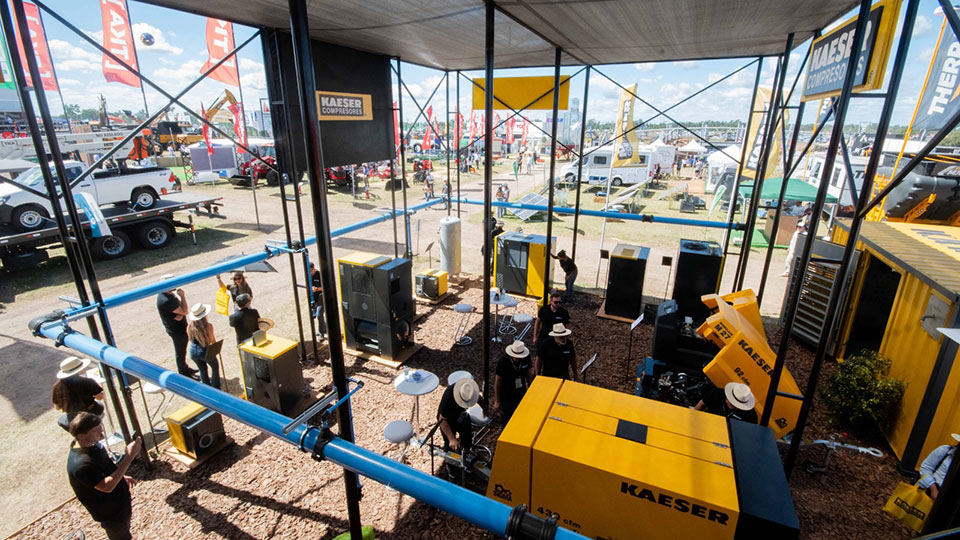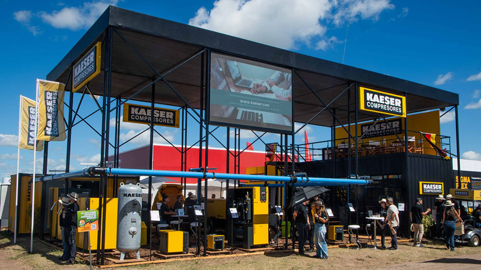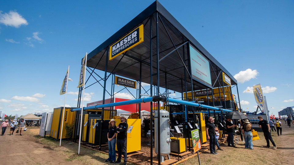 La configuración modular del stand no solo facilitó el montaje y desmontaje, sino que además reflejó la filosofía productiva de Kaeser: sistemas inteligentes, escalables y optimizados para el máximo rendimiento.