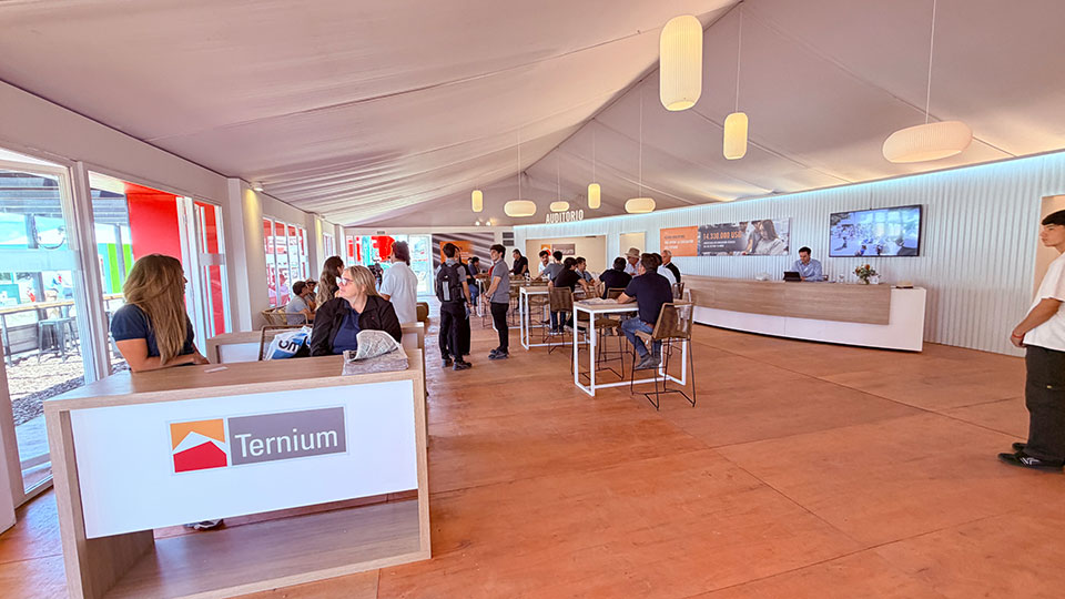 La compañía ocupó un imponente pabellón de 1200 m² en Expoagro 2026, con una superficie cubierta de 600 m². Proyectado y construido por Artek - Espacios que comunican, el diseño se destacó por su contundencia y funcionalidad, reflejando con precisión la identidad corporativa de la empresa siderúrgica. El espacio integró productos de la firma en cada detalle arquitectónico y albergó desde charlas técnicas hasta la entrega de los Premios Ternium a la Innovación Agroindustrial.